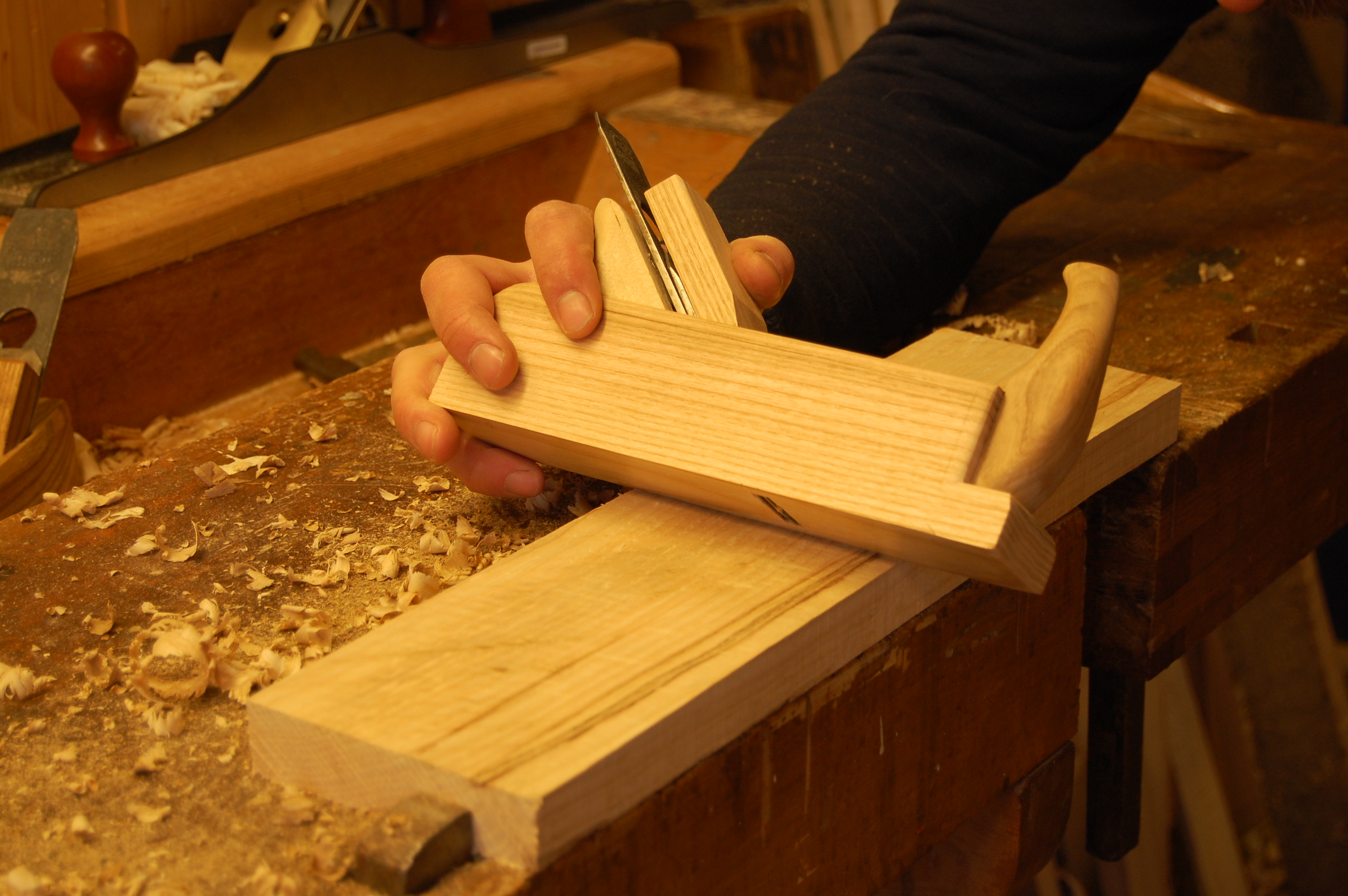 Høvling av en fjøl. Kjennerud-Løvdal.