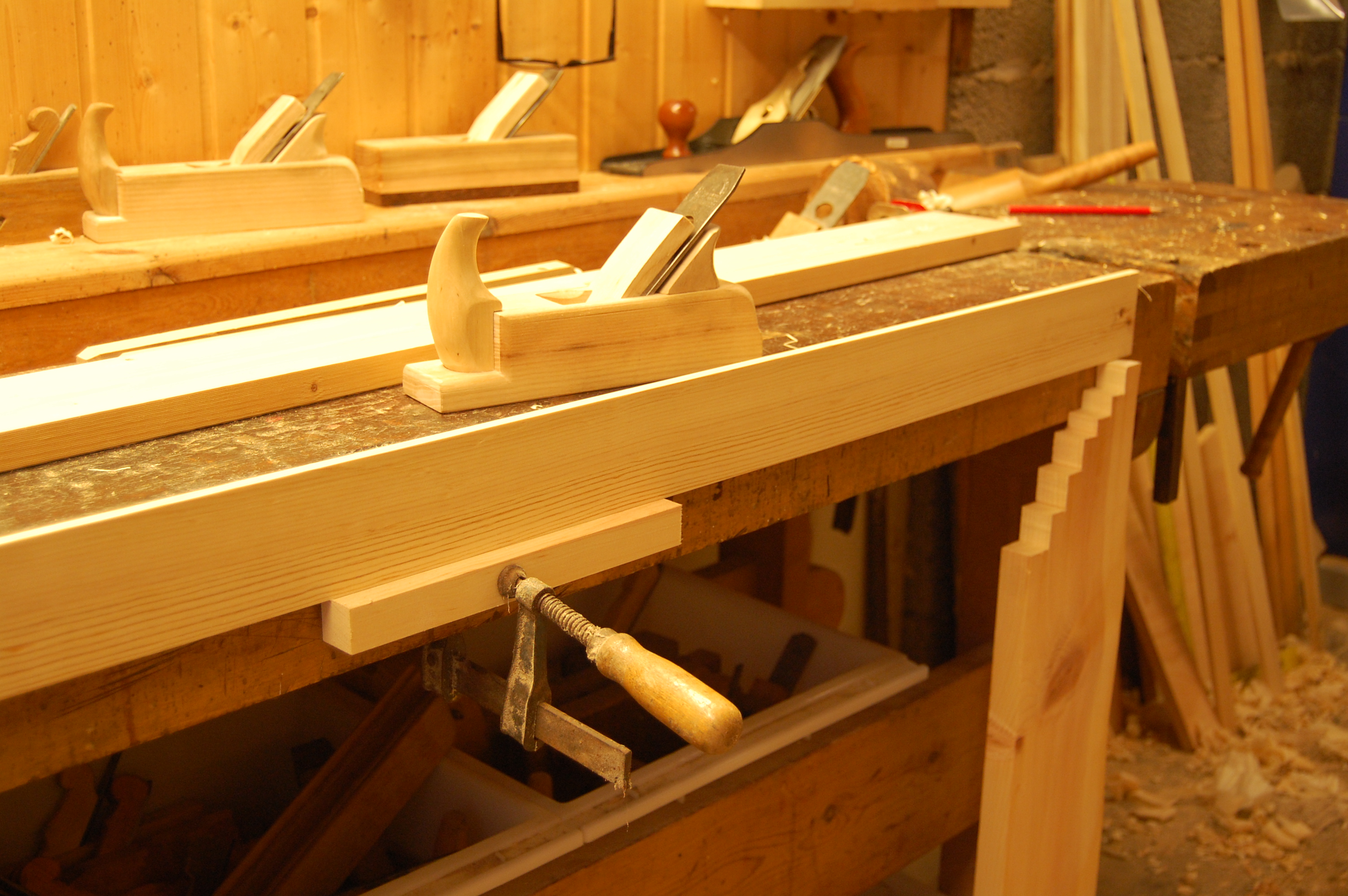 Spenning i høvelbenk og høvle tynne emner. Kjennerud-Løvdal