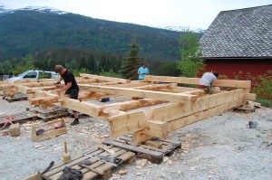 Vossagrindverk, bygging av ei vossaløe.
